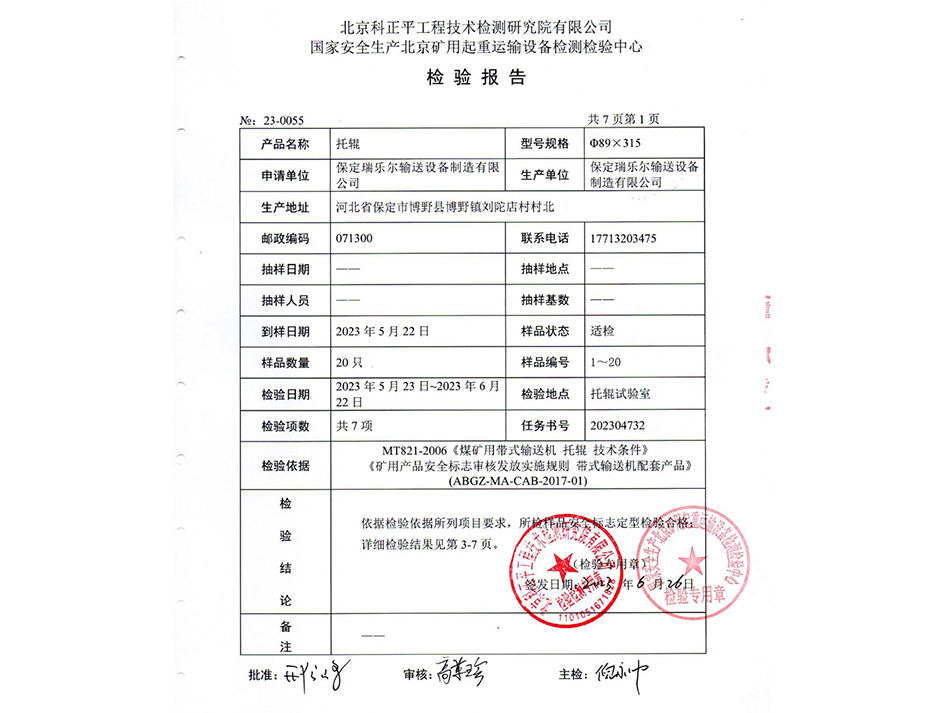 托輥89*315檢驗報告