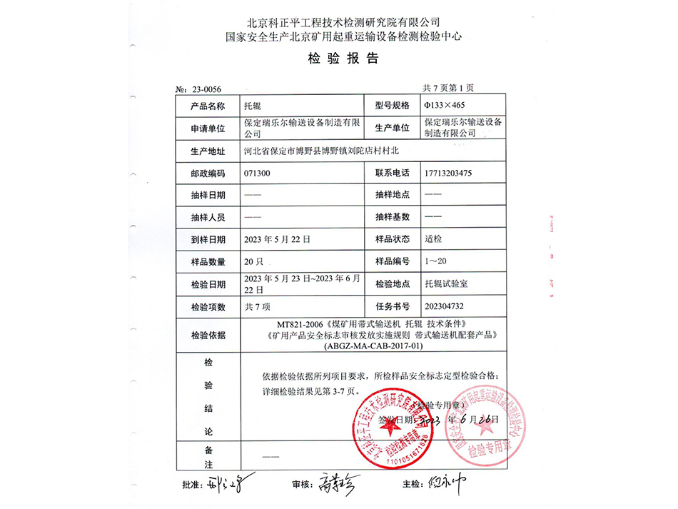 托輥133*465檢驗報告